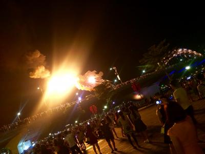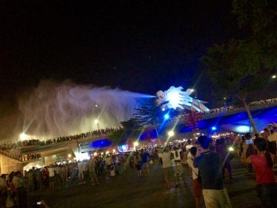 週末、土曜日曜日だけ21:00頃から火噴き&水噴きのショーがあります