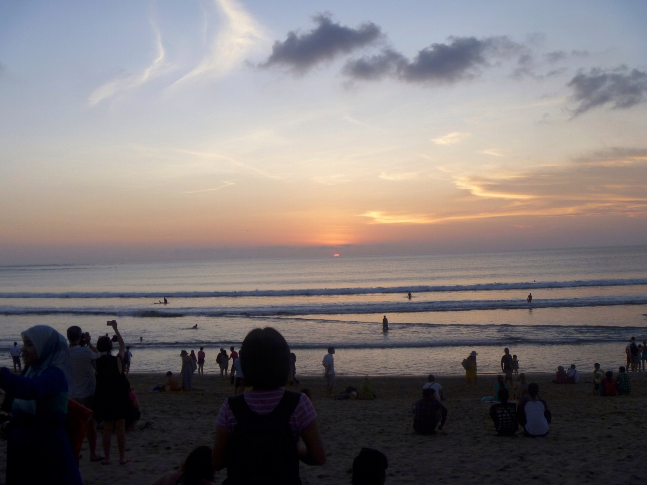 海で遊んでる人、サーフィンの人、ビーチでくつろいでる人、大騒ぎしてる地元の人、とにかくたくさん人がいます- 旅行時期