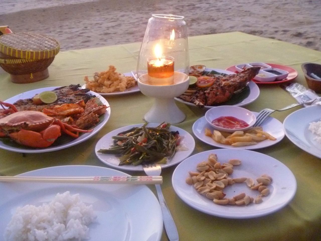 サンセットに合わせていくべきです!くらくなってから行くとただ真っ暗なビーチで陽気にシーフード食べる感じです。