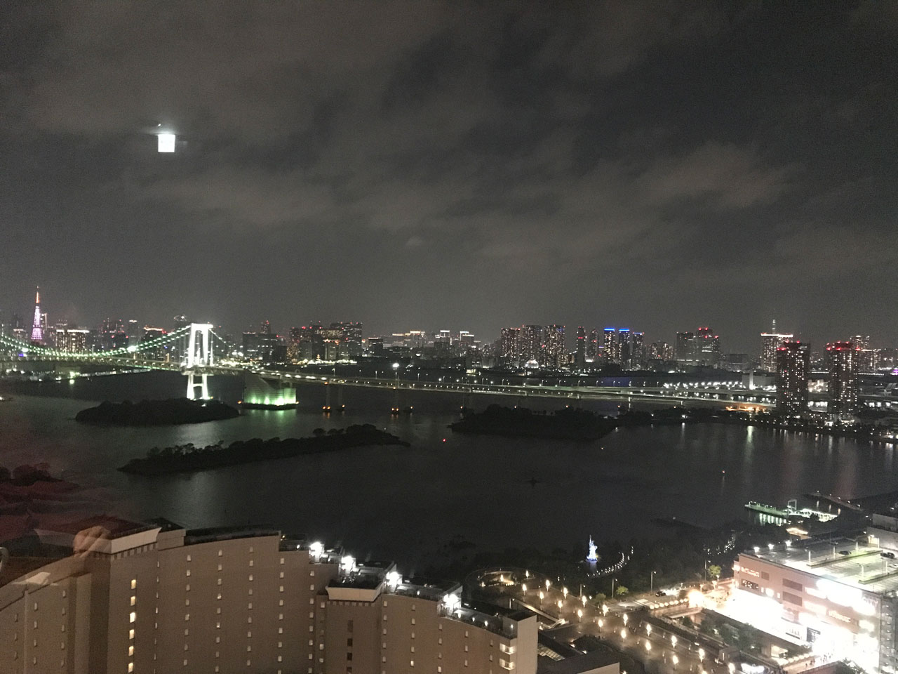 レインボーブリッジの夜景を眺めながらの夕食がいただけます。