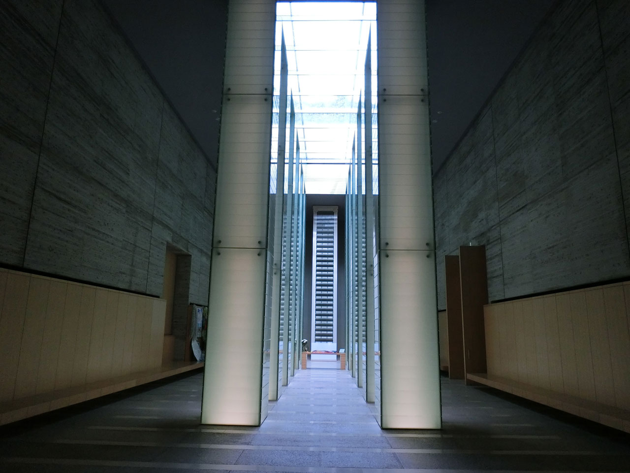 吹き抜けになっており、ガラスの柱が並んでいます。