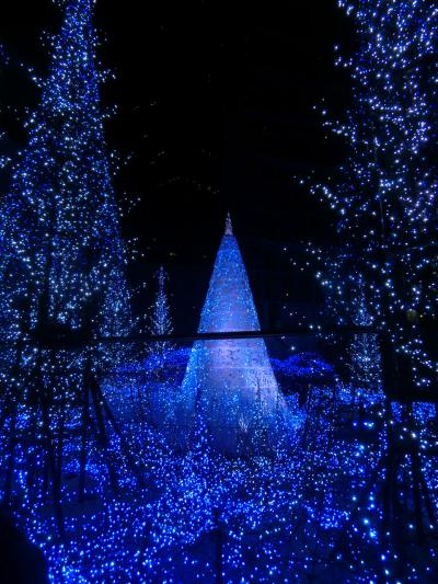 中央のツリーと周辺のイルミネーションが青をベースに色が変化します。