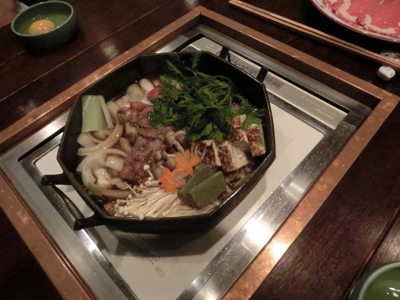 メインのすき焼きは最初の具材のセッティングはレストランの方が