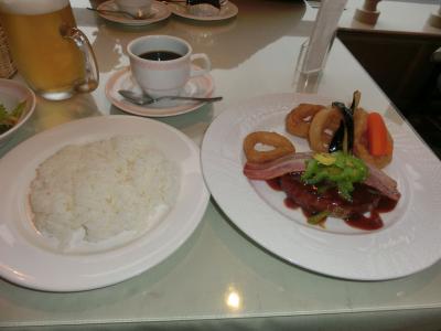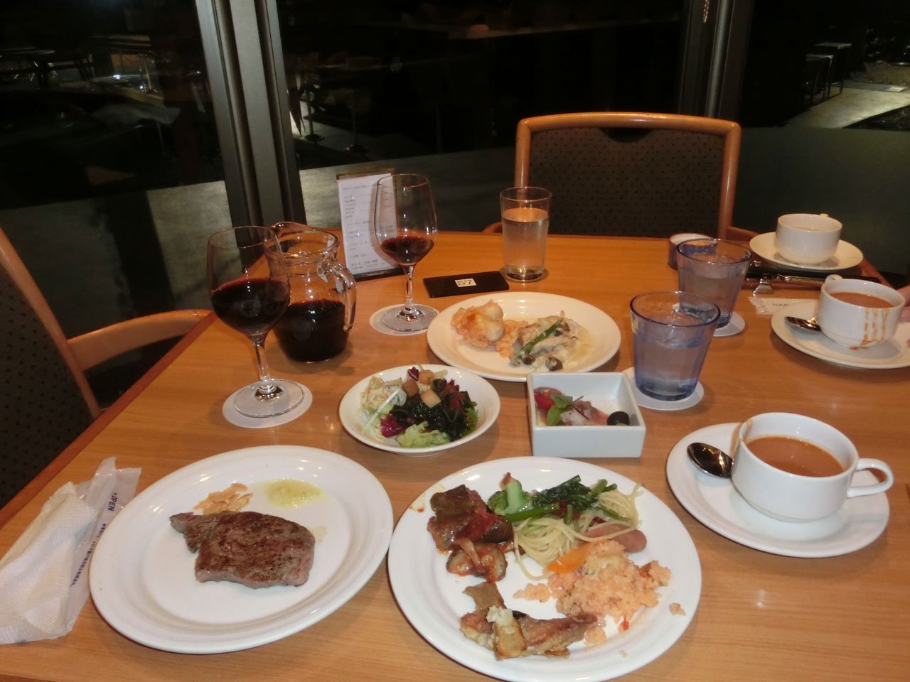 我々が夕食したときはステーキのサービスがありました。