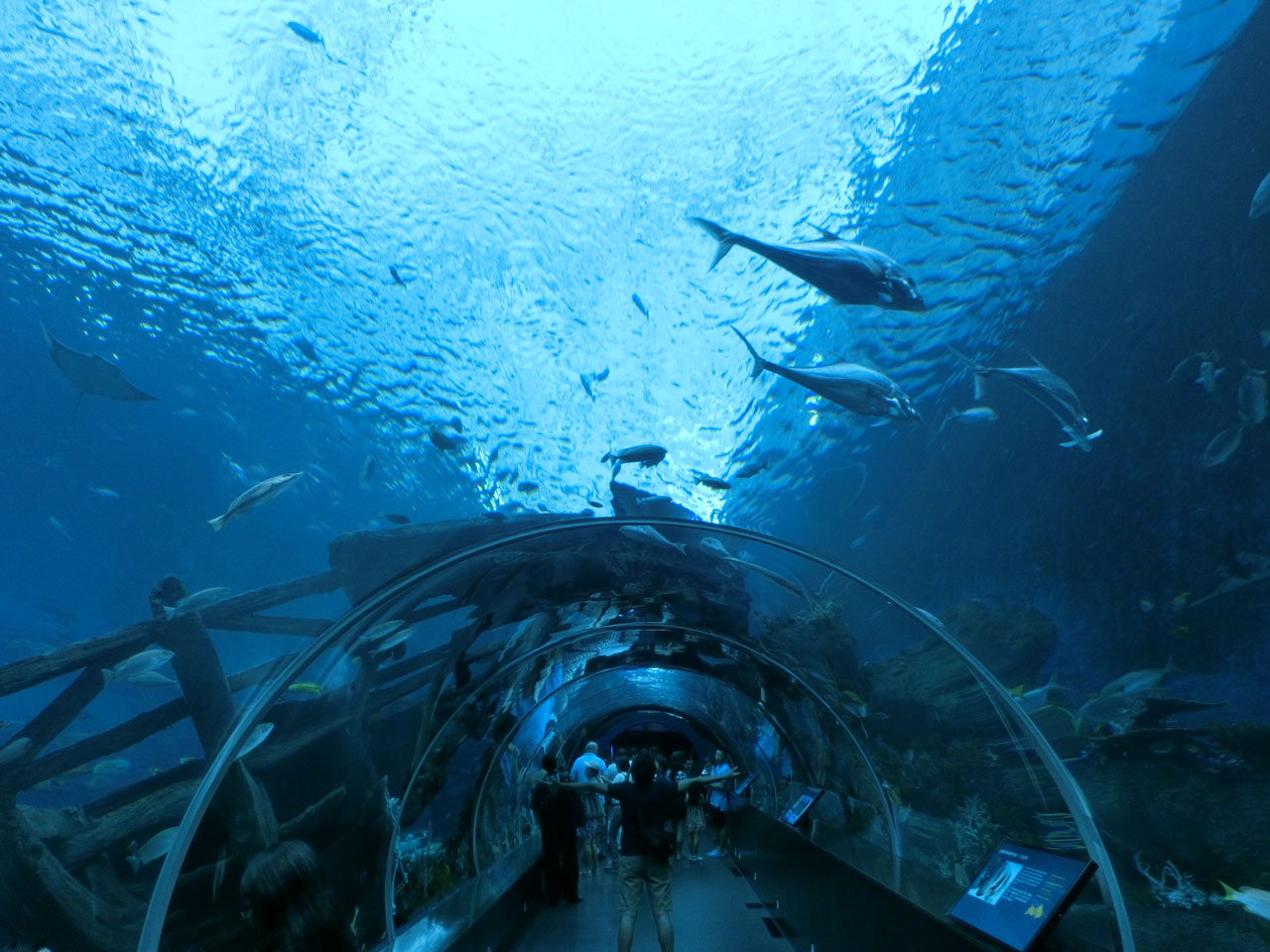 入ったところに大き目な水槽があり、その先は水槽のトンネルを抜けて進みます。