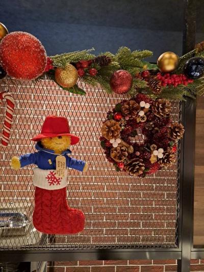 パディントンクリスマススイーツブッフェを開催中。パディントンの帽子と鞄...