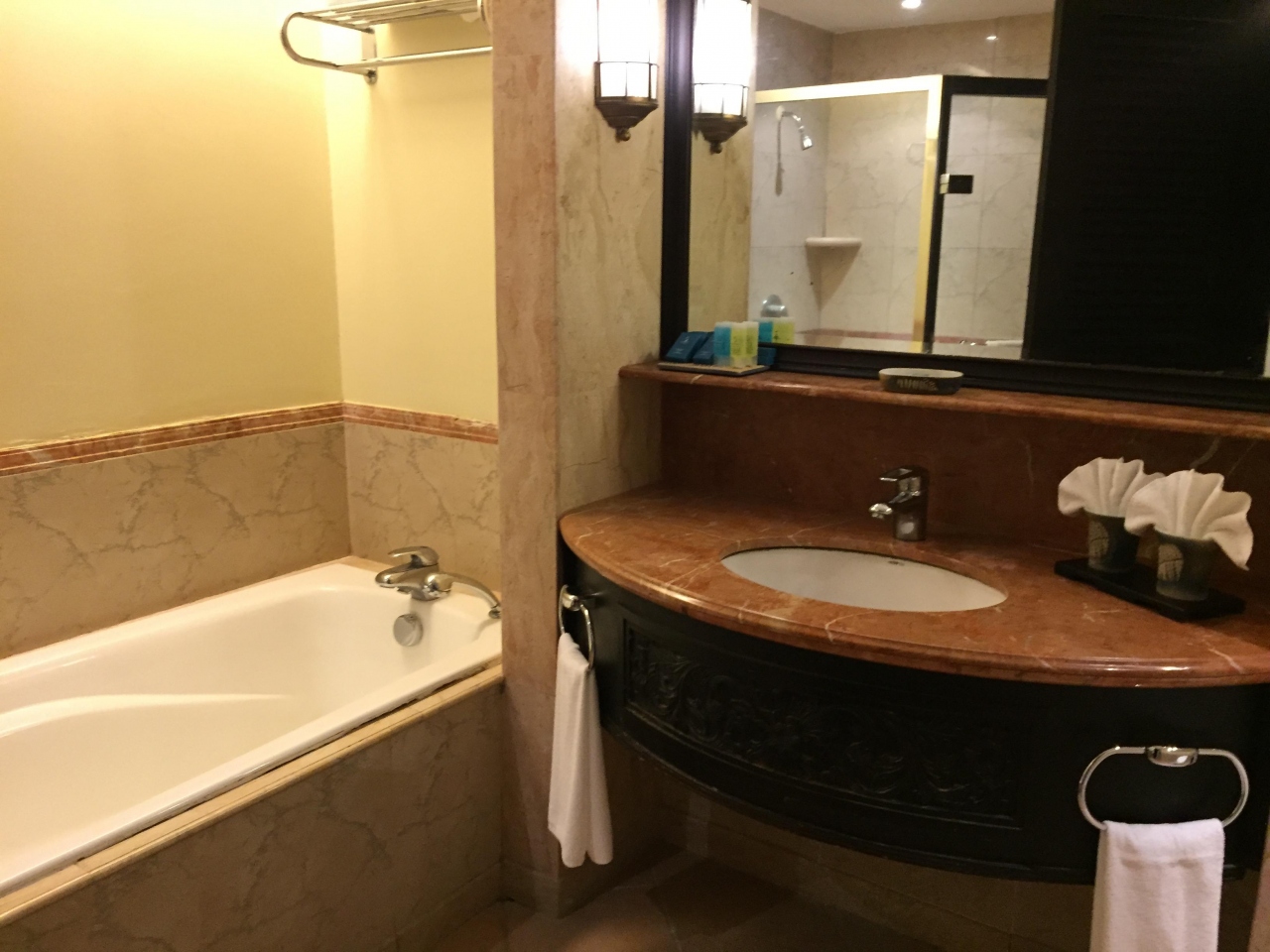 とても雰囲気が良いホテルなんですが、部屋がちょっと・・・。今回コネクティングルーム予約したんですが、バス内にごみが落ちていたり、清掃面でいまいち。しかも、一部屋のバスとトイレの設備が壊れていて使用できない、など。古いため、部屋内は少しかび臭いでしたし、って感じでした。- 旅行時期