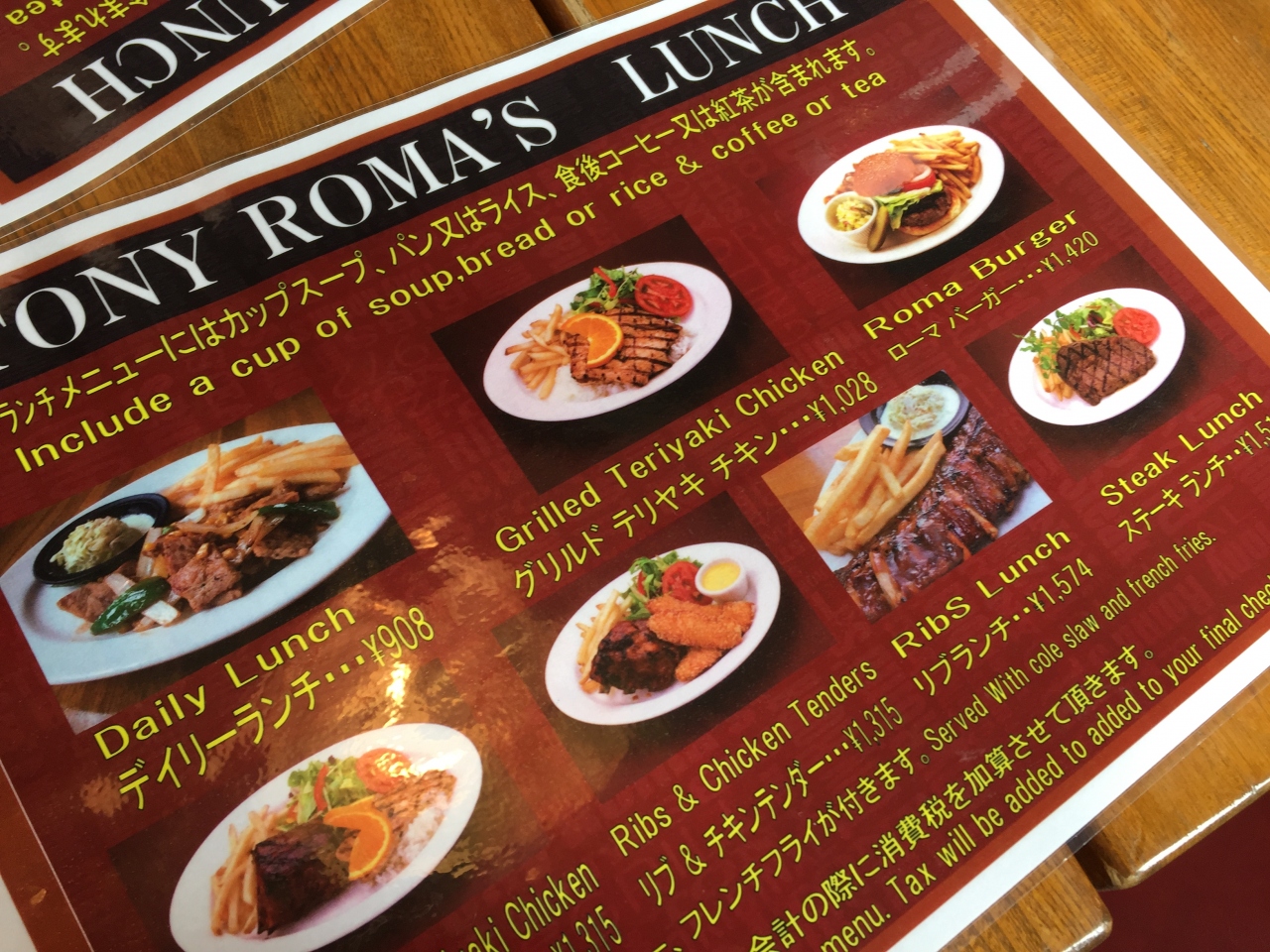 ランチメニューで、ステーキやリブステーキ、チキンなどのセットメニューもあります。