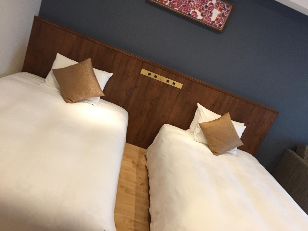 部屋は、きれいで清掃もばっちり、ツインで1台に私と小3の娘添い寝しましたが余裕でした。臭いも問題なし。