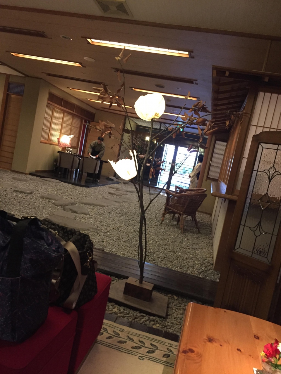 ロビー内に玉砂利や洋風の大きなソファーがあり、ジャズも流れていて、とても雰囲気が良い♪ロビーでジュース飲み放題、夜間には時間が決まってましたが、ワインも飲み放題でした。