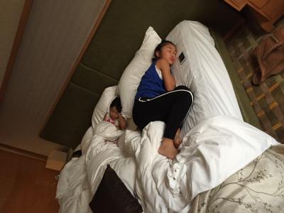 客室もキレイに清掃され、臭いも問題なし。ベッド幅も大きくツイン1台に小3と私で添い寝しようかと思いましたが、添い寝プランはないとのこと。小3もエキストラベット利用することに。
