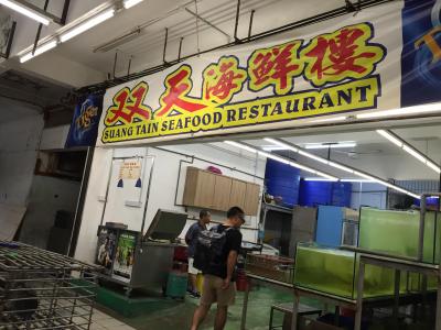 フードコート内に4店舗ほど店があり、観光客だとわかると客引き合戦でした。「双天」のプラカード持ったお兄さんが案内してくれて、ついていきました。んで、まず、席に案内され、注文係のおばさん(英語ができるスタッフでした)とともに、生け簀へ。真っ先に案内されたのが、お高いエビや魚コーナーです。んで、スマホの画像をみせながら、何品な注文し、席で待つことに。