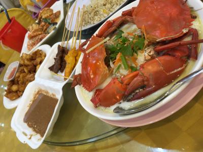 お値段は、大きいえび5匹、カニ2匹、貝2種類、炒飯、青菜、イカ、ドリンクで、合計450RM(12000円)はかかりましたね(笑)- 旅行時期