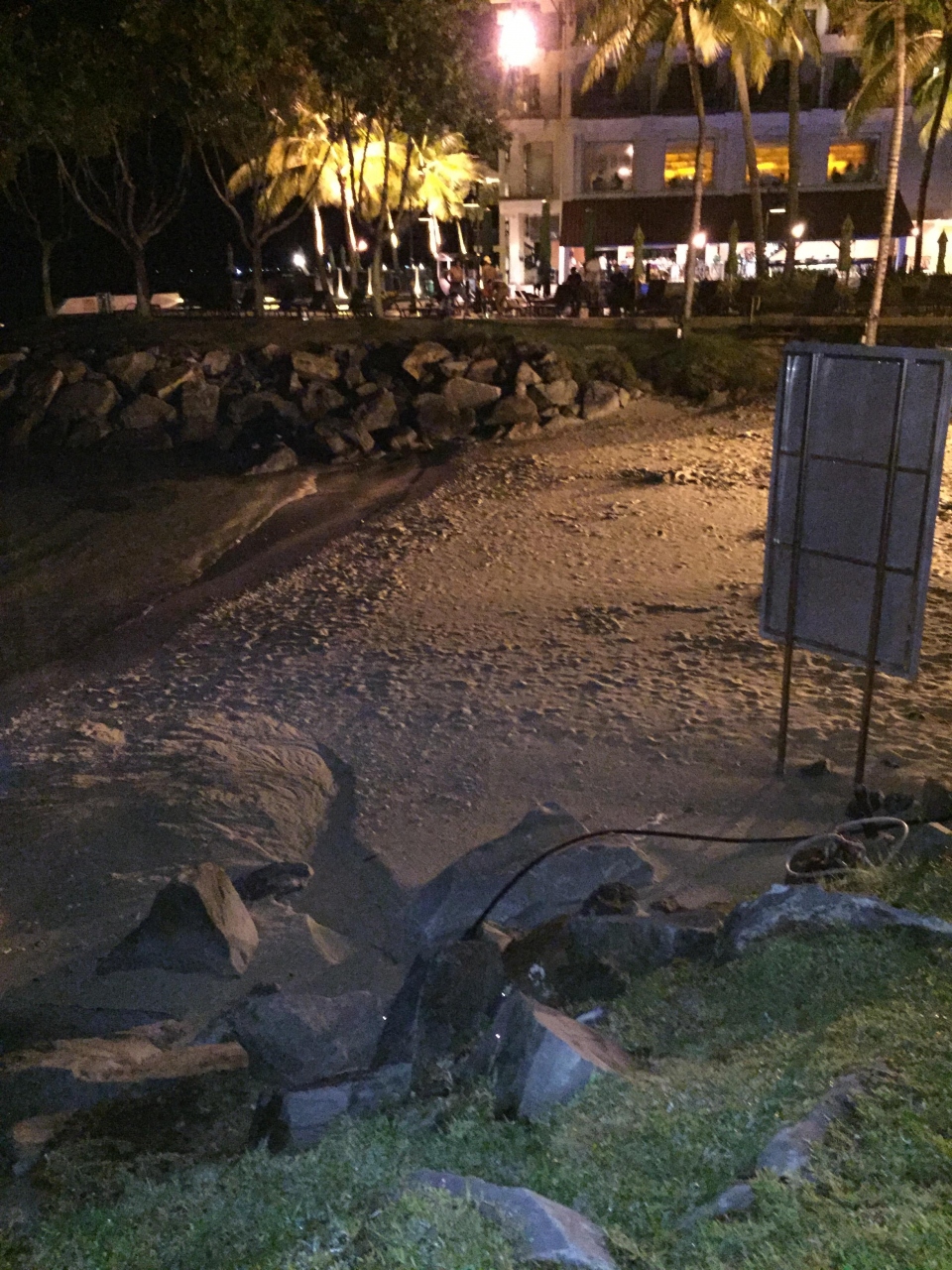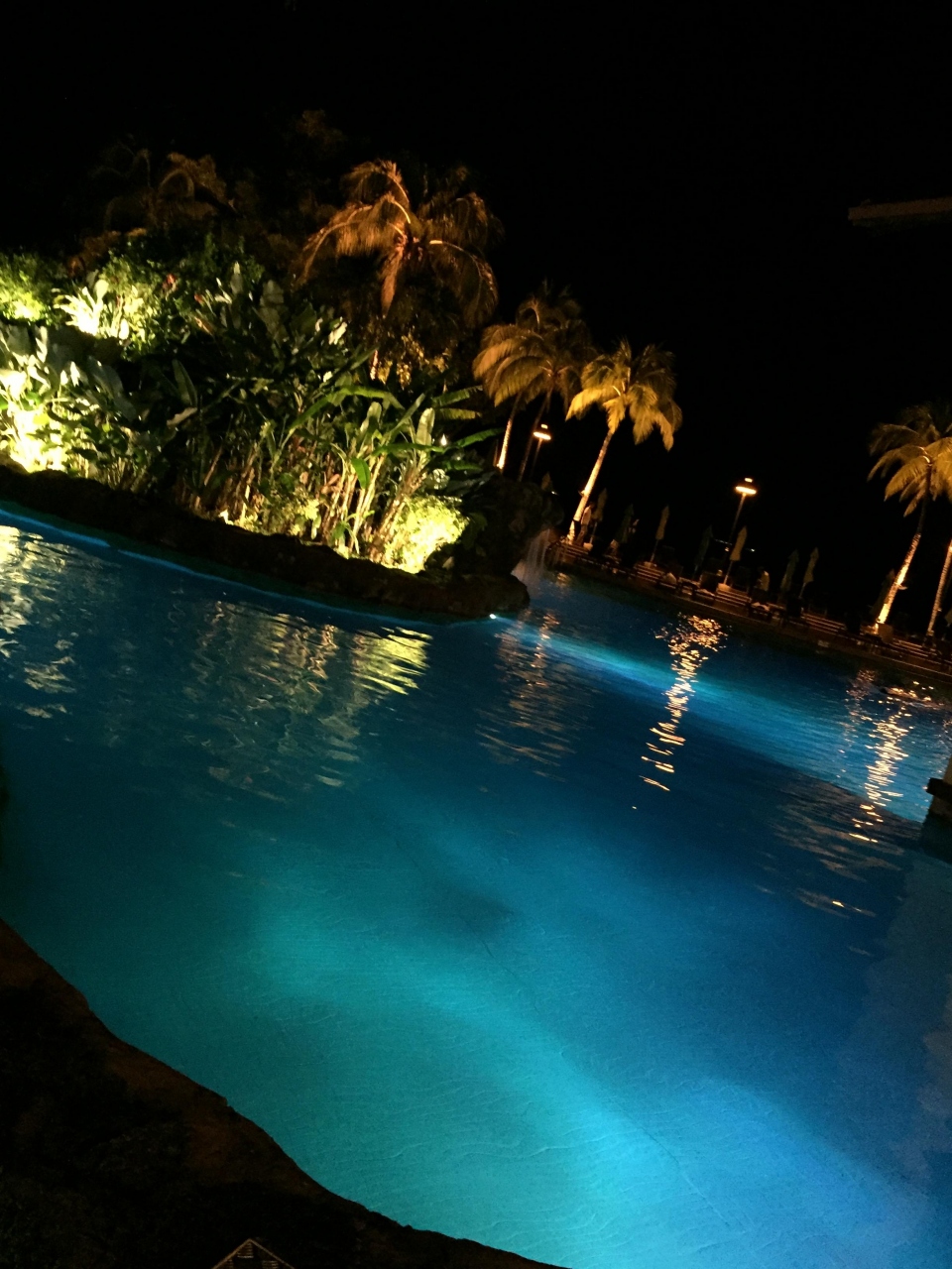 ビーチもありますが、かなり小さめです、んでごみも浮いています、汚い。夜のプール、ライトアップされとても素敵でした。夕日鑑賞もできます。