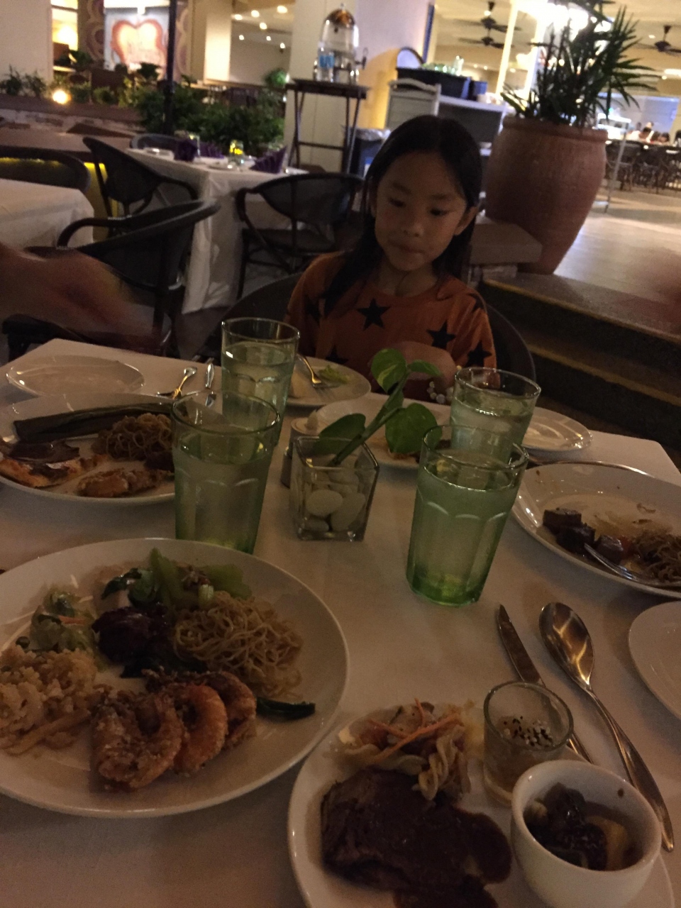 ブッフェは、アジア料理、シーフード中心で朝食も夕食も美味しかった~。スタッフが、すかさず皿を片付けにくるので、なんか落ち着かない感じがありましたね。んで、食事会場の9割は中国韓国人でたくさんでした。とても賑やかです。
