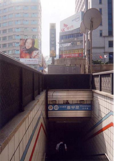 横断歩道を渡ってしばらく歩いたと思う。【忠武路駅】で向こう側の通りに出...