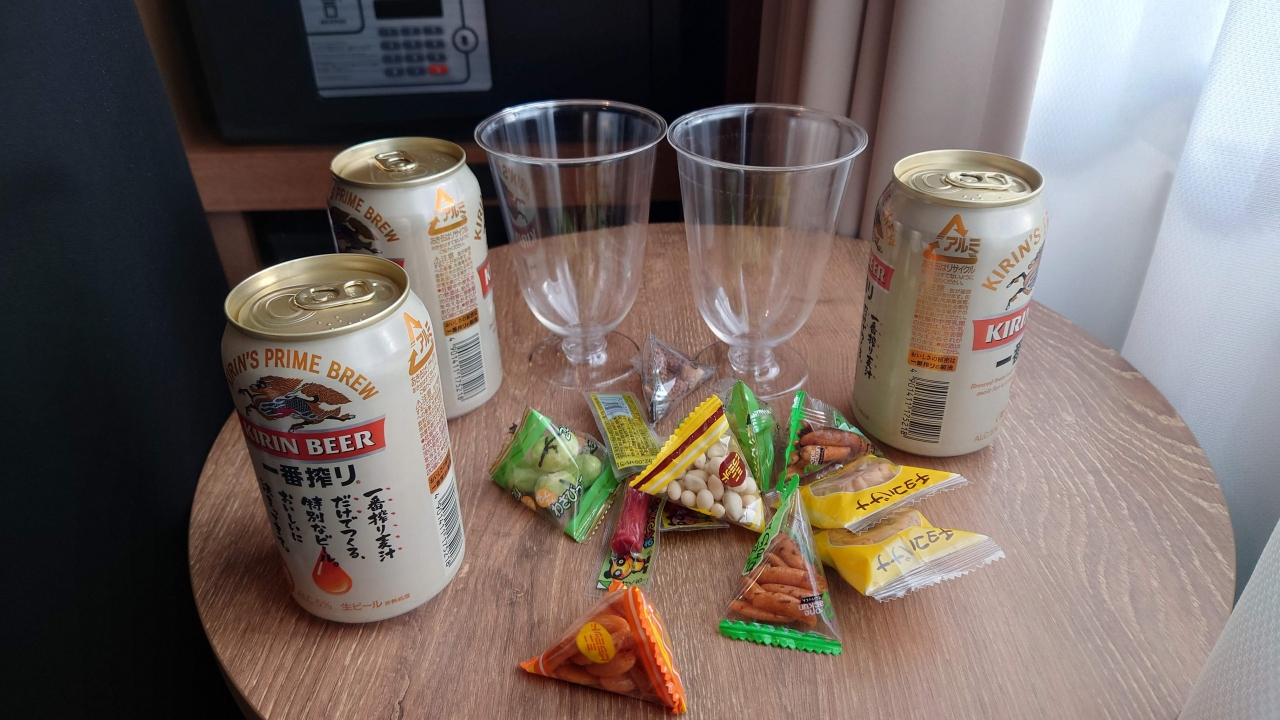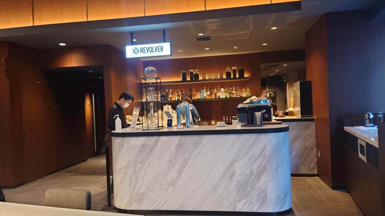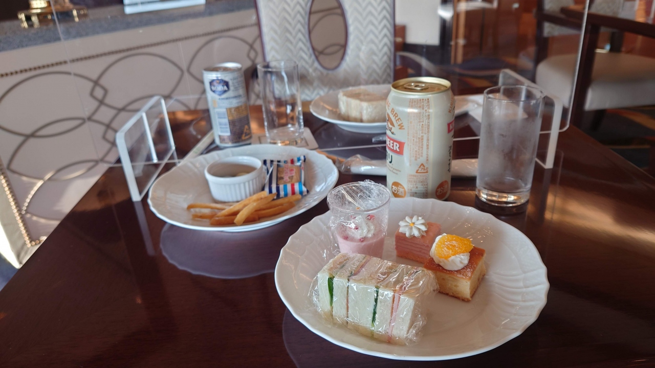 1階のラウンジはコーヒーやお茶、お菓子が24時間飲めます。宿泊会のクラブフロアはビール、ワイン、酎ハイ、ペットボトルの水、コーラ、ジンジャーエールなどがあり、部屋に持ち帰って飲めます。