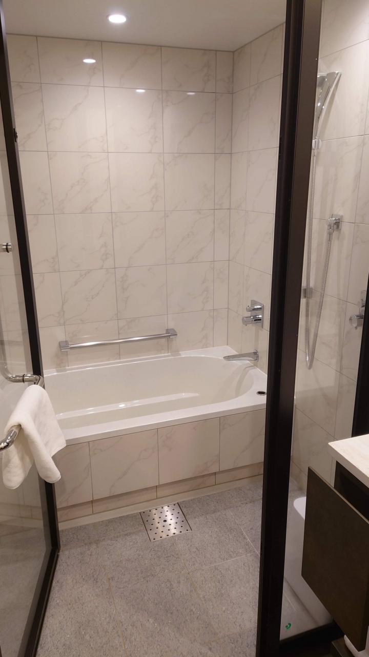 日本で新しいホテルはユニットバスではなく、トイレとお風呂(洗い場付き)、洗面台が独立したホテルが多いような気がします。こちらのホテルもそうで、とても使い勝手が良いです。価格の割には高級感もあって、人におすすめしたいホテルです。