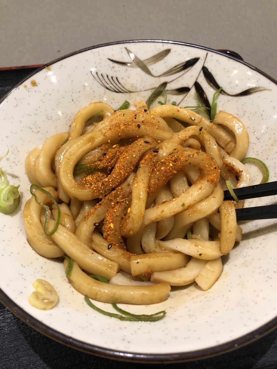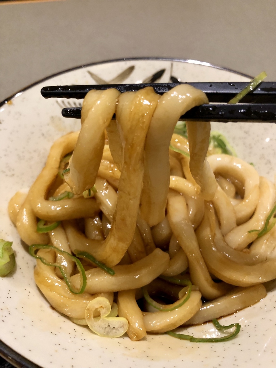 うどんは極太でふわふわ、甘めのたまり醤油との相性はバツグンで美味しいです。