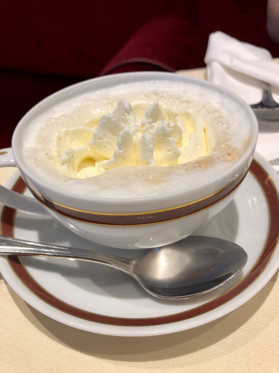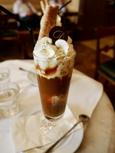 2階のテープルに案内され、まずはアイスカフェをいただきます。ウィーンのアイスカフェはアイスが入っているのでコーヒーというよりパフェに近い感じですね。でも暑い時に冷たい飲み物は最高です。
