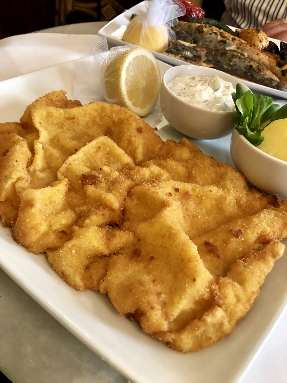 シュニッェルとマスのソテーどちらも美味しく完食。魚料理の野菜のグリルが香ばしくて美味しかったです。