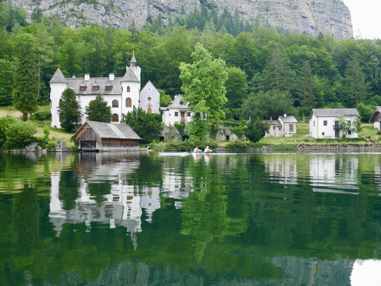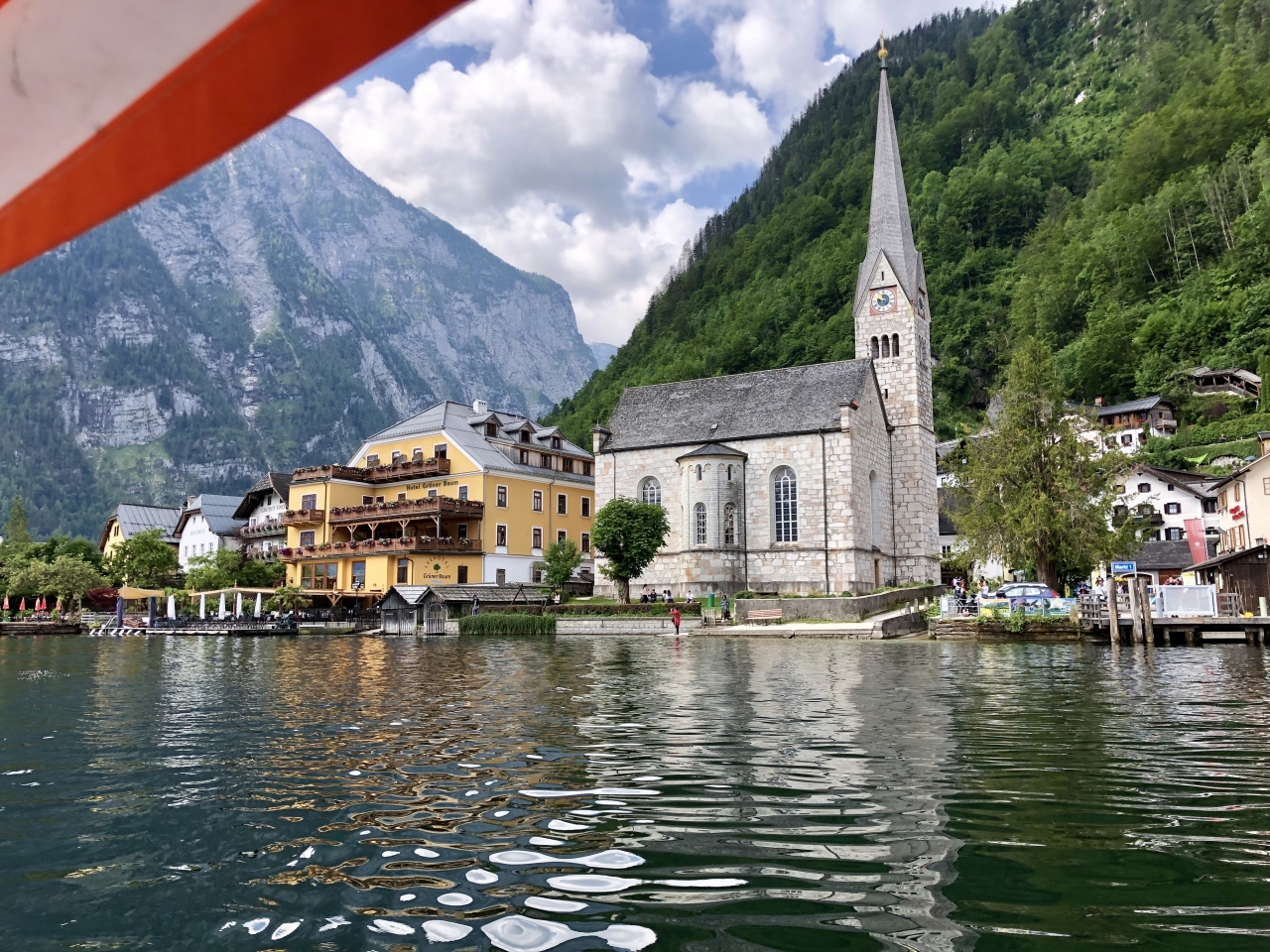 天気が良かったので、電動ボートでハルシュタット湖を遊覧しました。