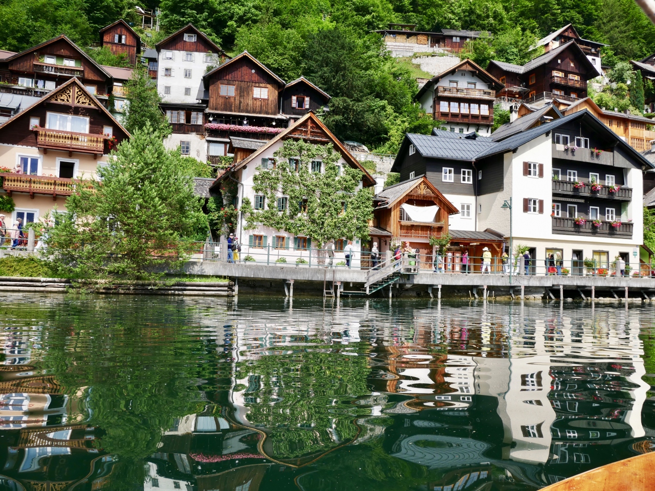 湖上から眺めるハルシュタットの街並みは、山服沿いにお花を飾った家が立ち並び素敵でした。