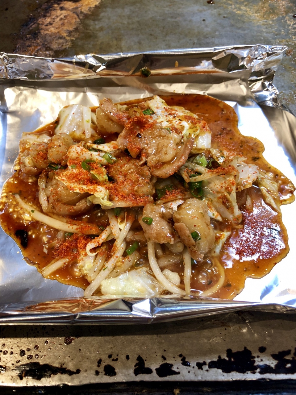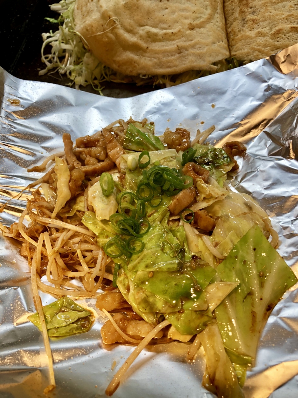 五エ門はもちをそのままお好み焼きに入れるので食べ応えがあります。