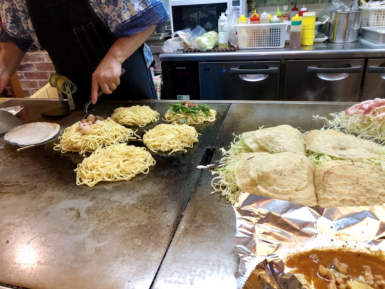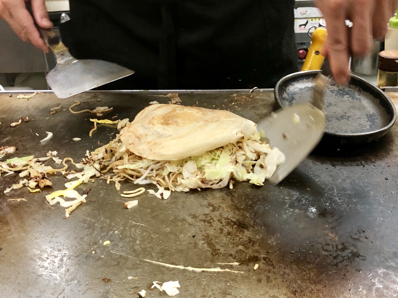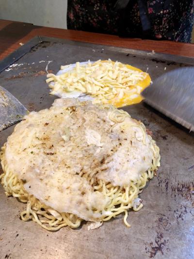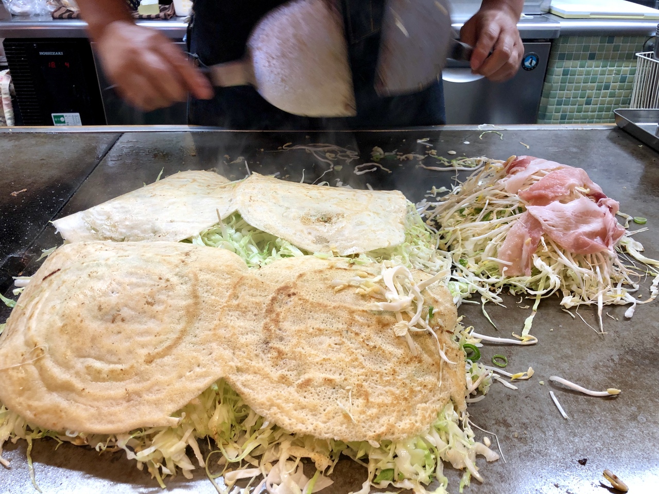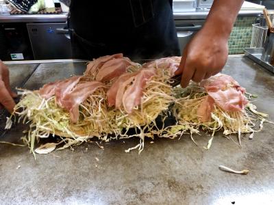 ハフハフしながらお好み焼きを食べるのが好きなので店内の鉄板でいただきます。