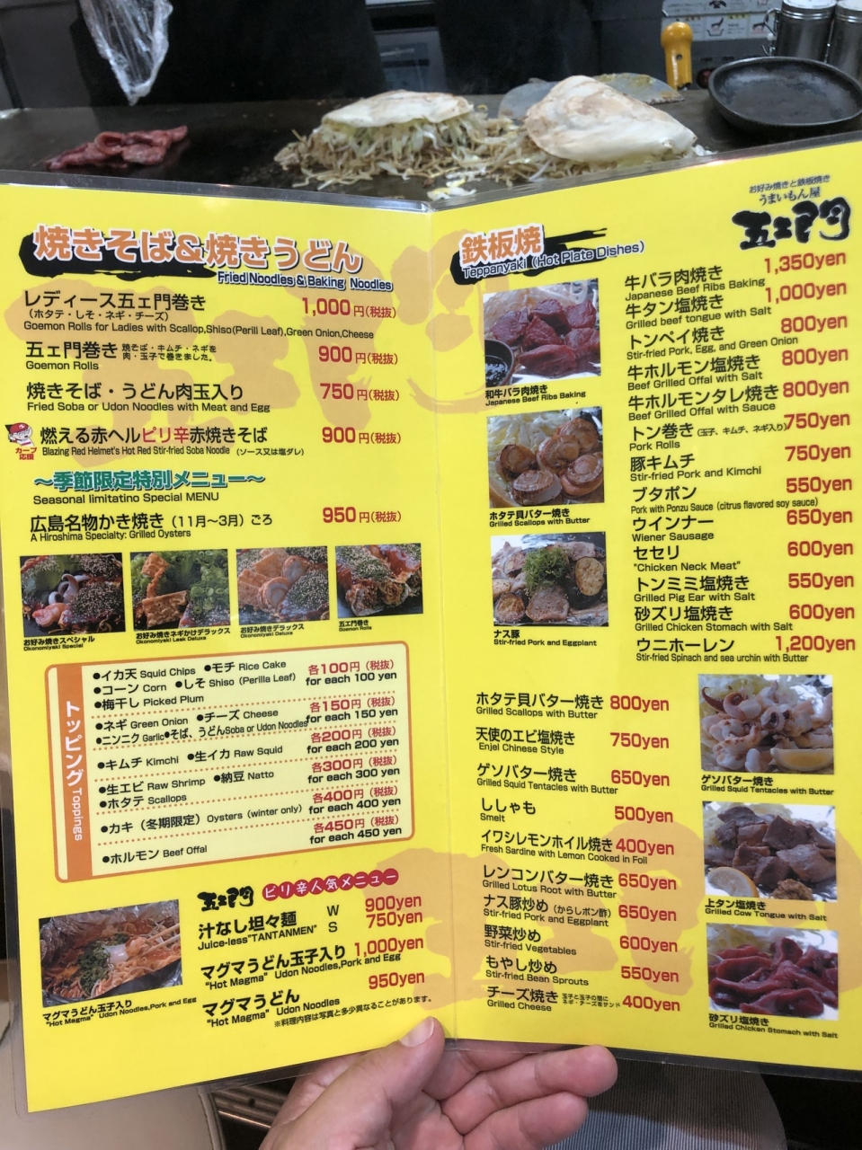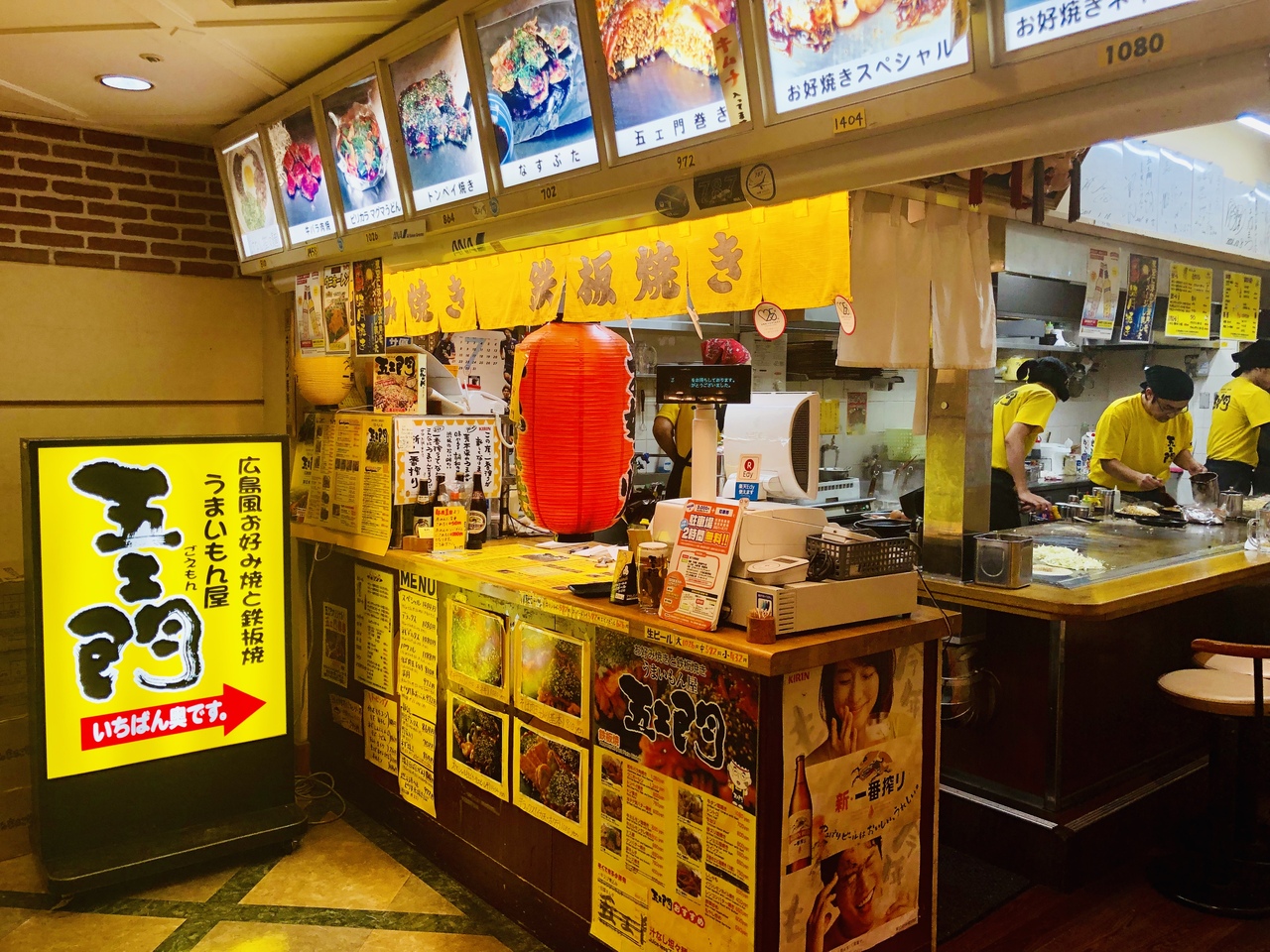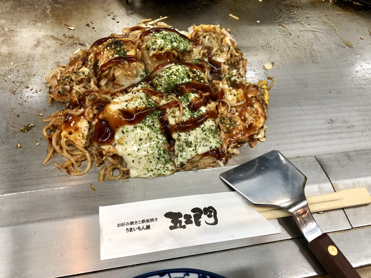 広島空港の2階のフードコートにあるお好み焼き五エ門でお好み焼きをいただきました。