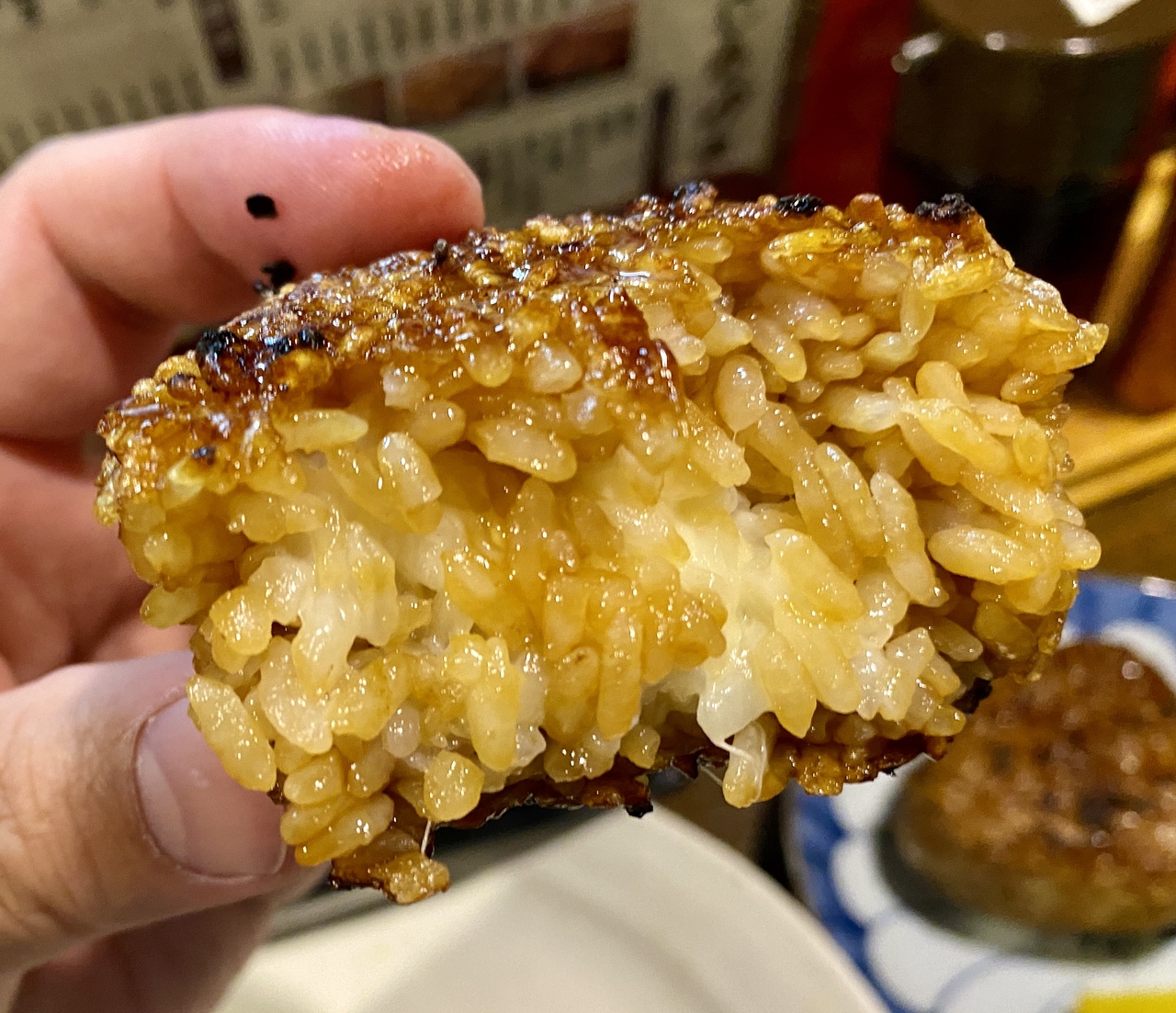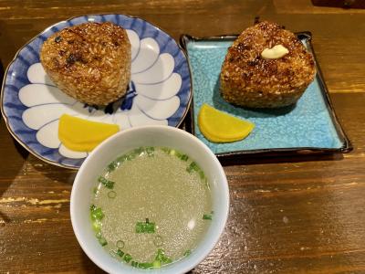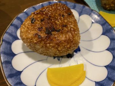 焼きおにぎりは、外は醤油のお焦げがありカリカリで香ばしく中は醤油がご飯に染みて美味しいです。