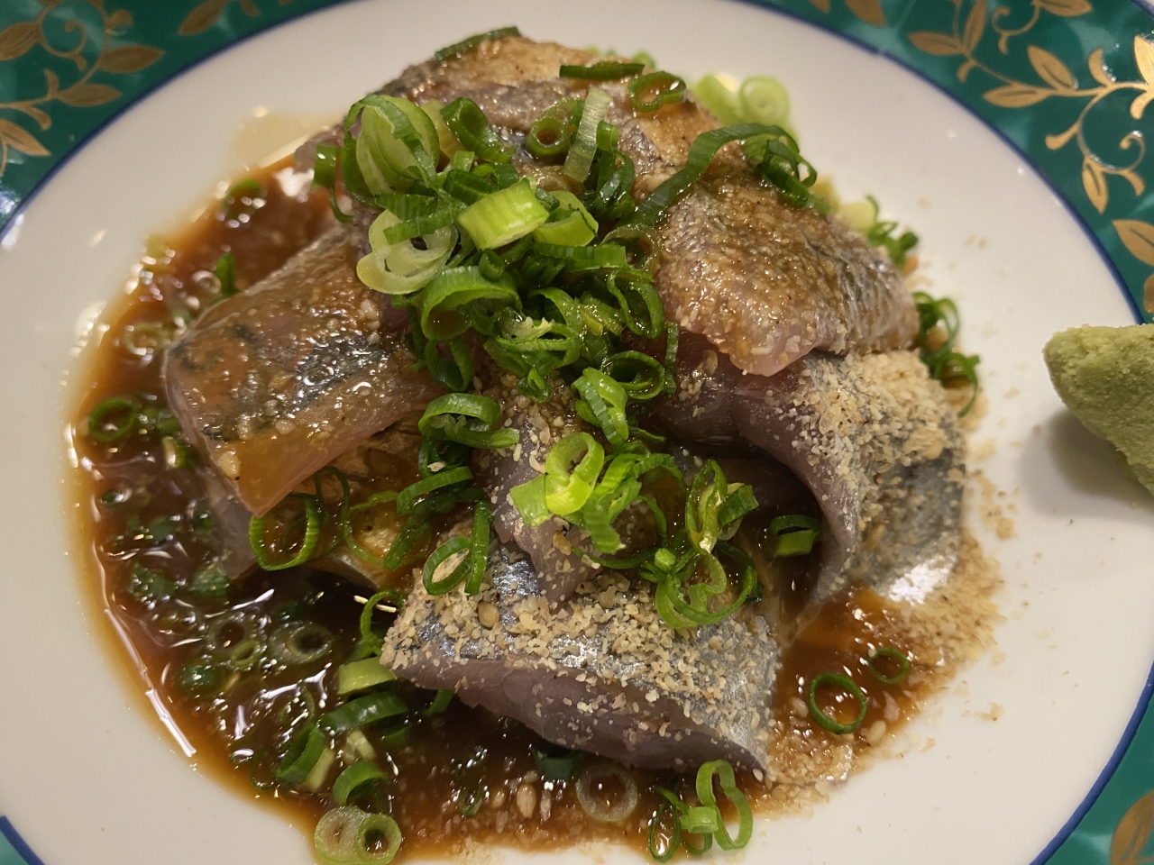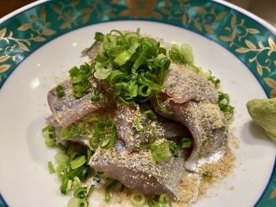 あじごまはお勧めのタレをかけていただきます。あじは臭みもなく身も締まって美味しかったです。