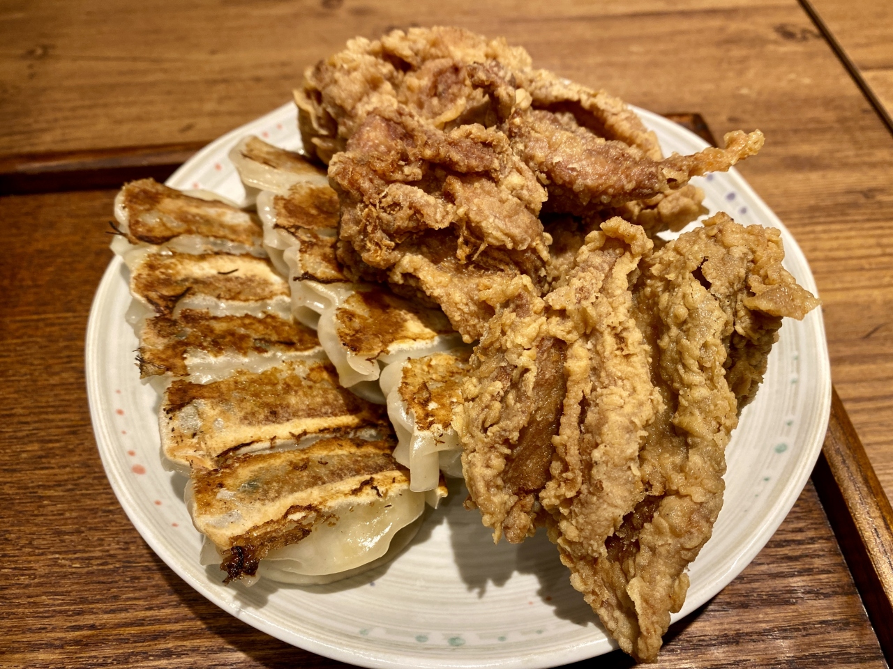 牛ミンチの美味しい一口餃子とクリスピーでジューシーな唐揚げをいただきました。