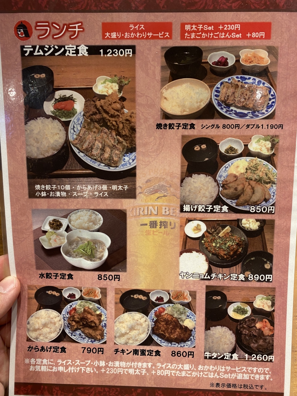 席に案内されテムジン定食1,230円を注文。