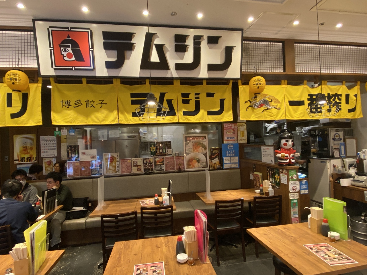 そんな中、KITTE博多の地下街に博多餃子のテムジンがあり、こちらでお昼ごはんに決定。♪( ´▽`)