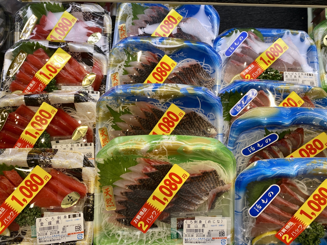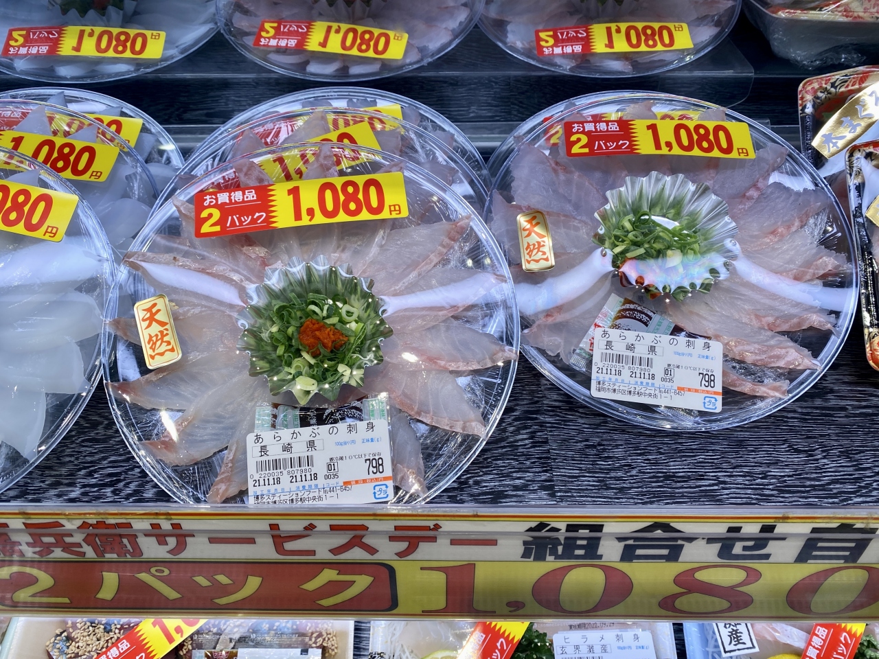 鮮魚は、2パック1,000円程度で玄界灘産が購入できるのが魅力的です。