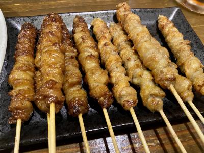 とんこつラーメン、水炊き、モツ鍋、鉄なべ餃子など、福岡の美味しいものは一通り食べたので他に美味しいものは無いか探したところ、焼き鳥のとり皮が名物らしいとのこと。しかもとり皮は串にぐるぐる巻かれているらしいです。