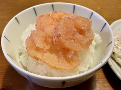 そして明太子は熱々ご飯にかけて、餃子、唐揚げとローテーションしながら美味しくいただきます。