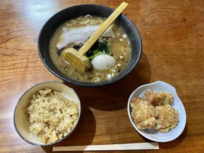 唐揚げは熱々の大きいのが3個、衣はカリカリでクリスピー感が最高。鶏肉も味わい深くて美味しい。