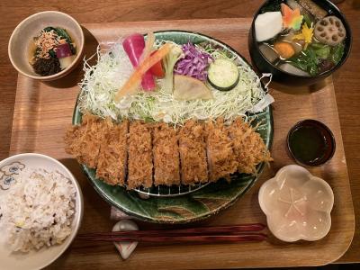 初めて食べる大和ポークのとんかつは柔らかくて美味しい。