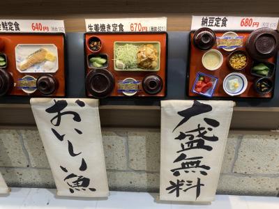 焼鮭定食や豚汁定食など7種類あり600円程度です。朝ビールもいただけますよ。(笑)