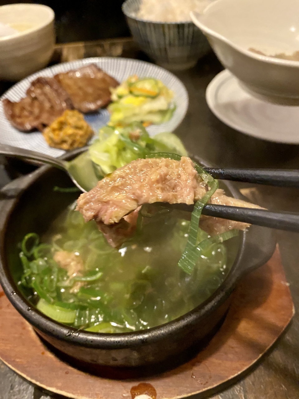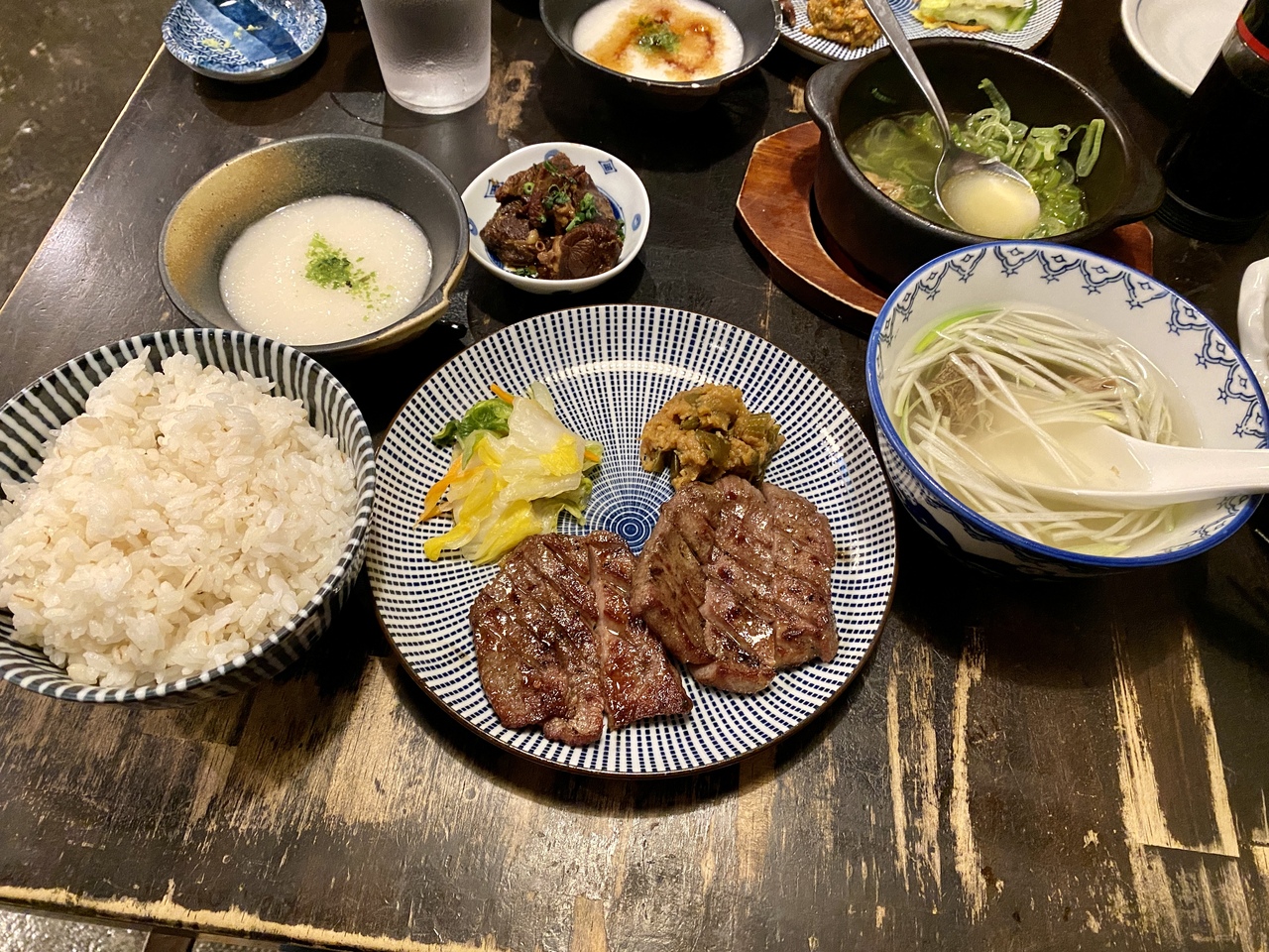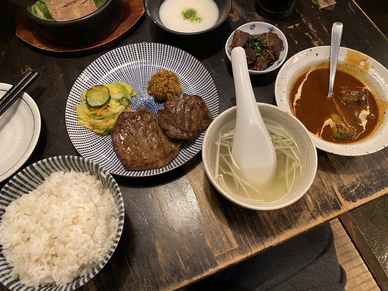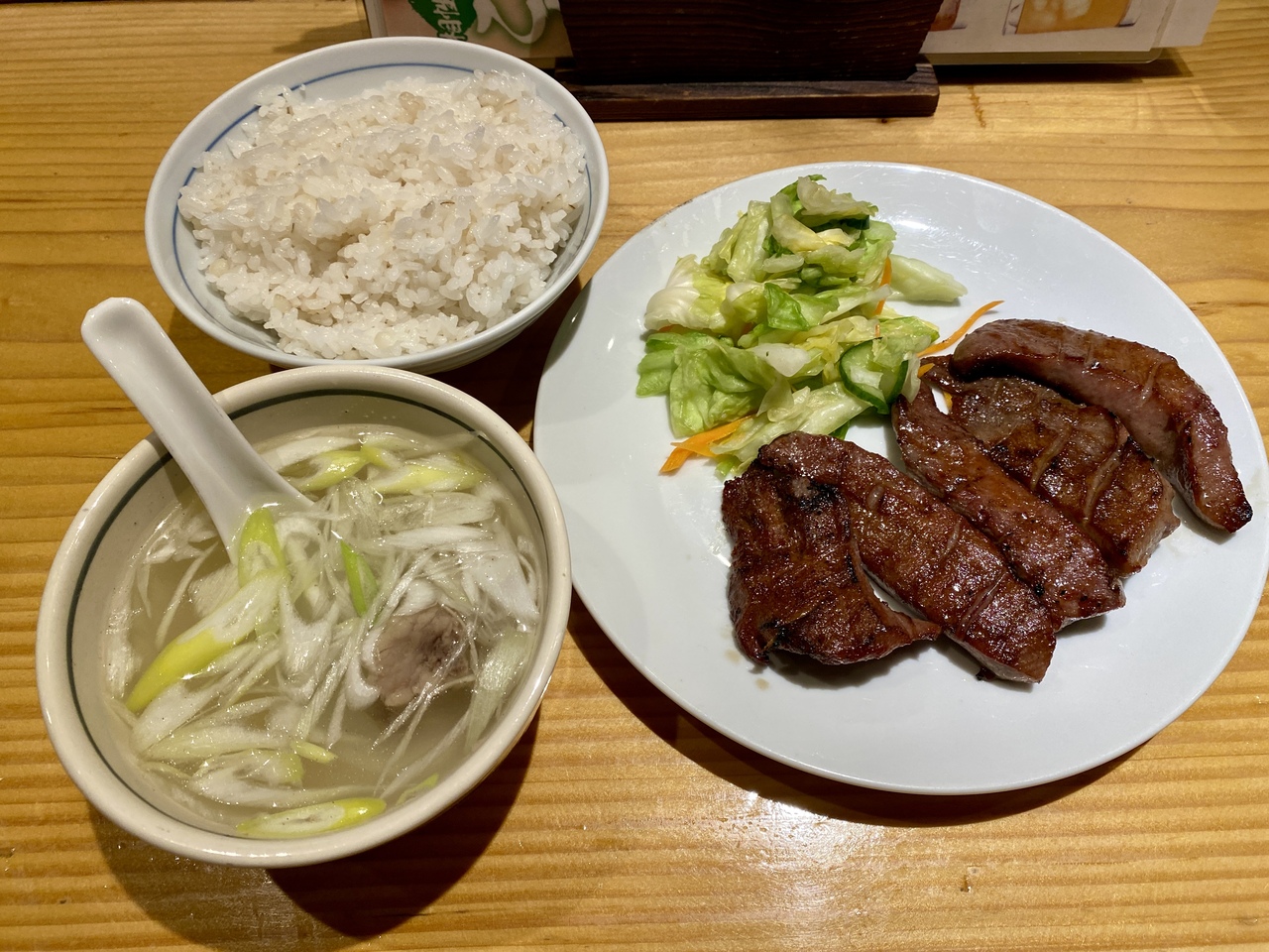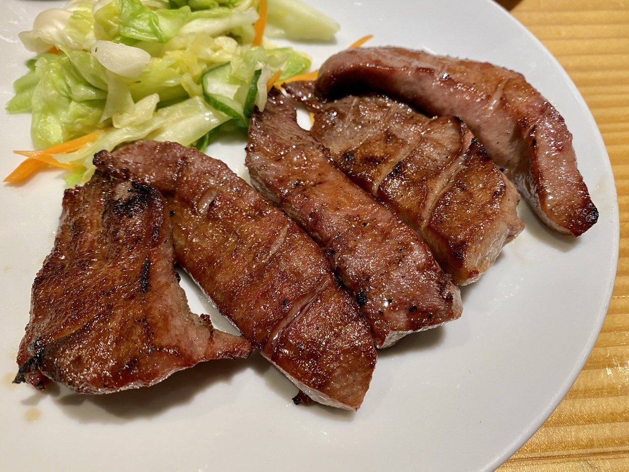 最後に牛タン定食です。こちらのお店は、厚切りを短冊状に切って提供されます。牛タンの弾力を楽しむ感じですね。旨味太助に比べるとちょっと量は少ないかもしれません。
