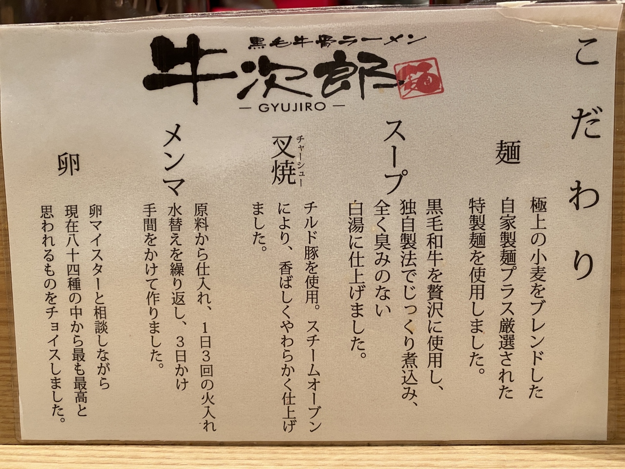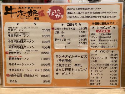 ホテルから近いところで食事できるところを探していると、『牛次郎』というラーメン屋さんがヒットしたので行ってきました。