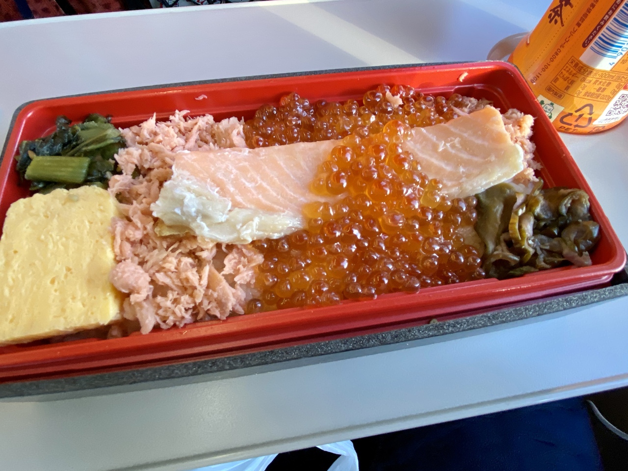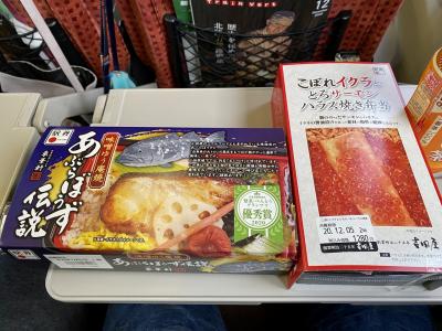 『こばれイクラととろサーモンハラス焼き弁当』と『あぶらぼうず伝説』をいただきました。