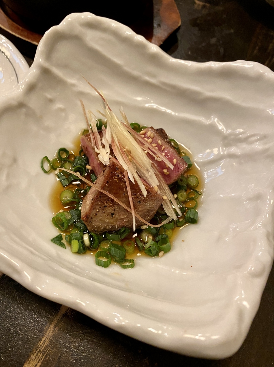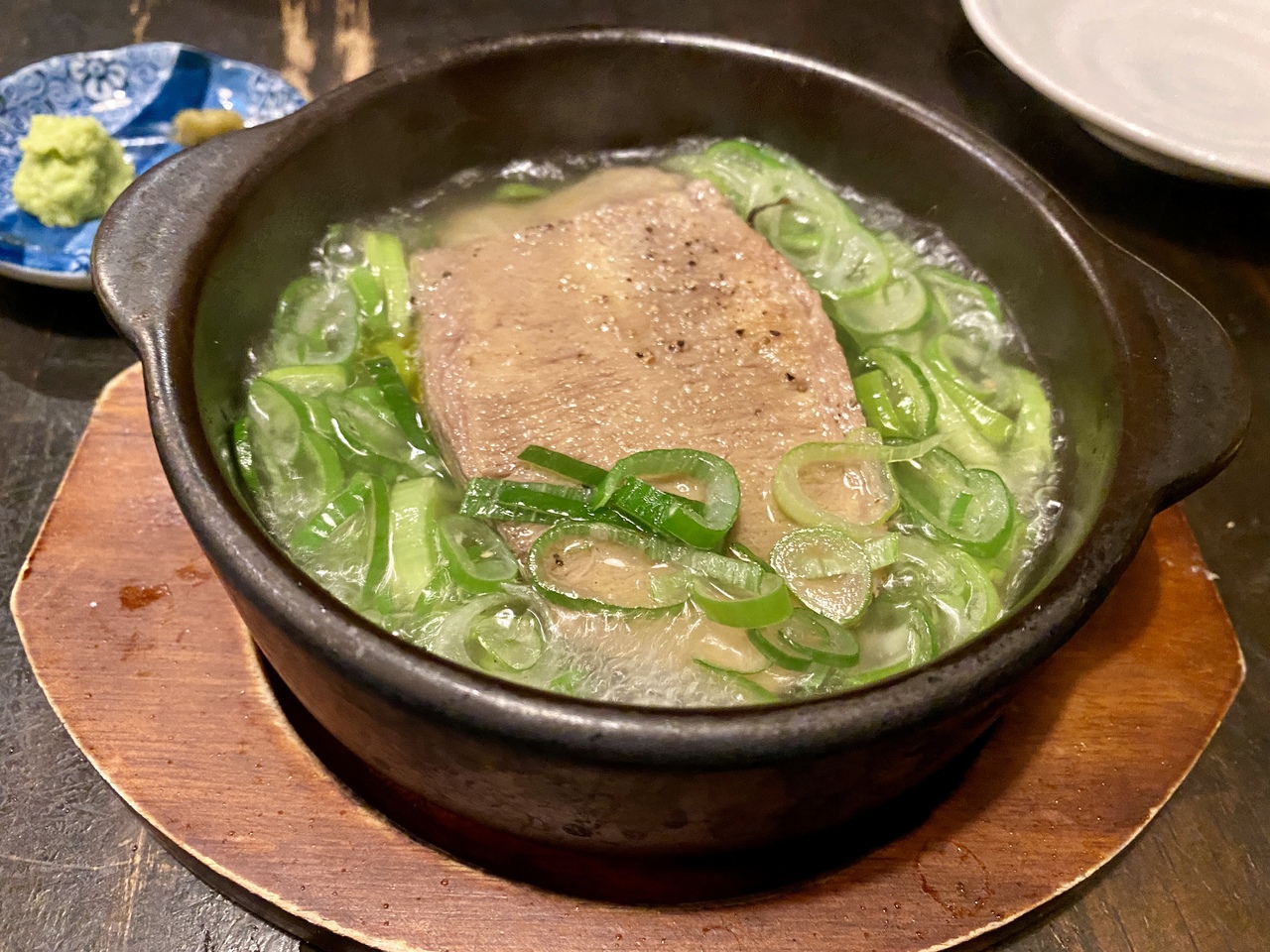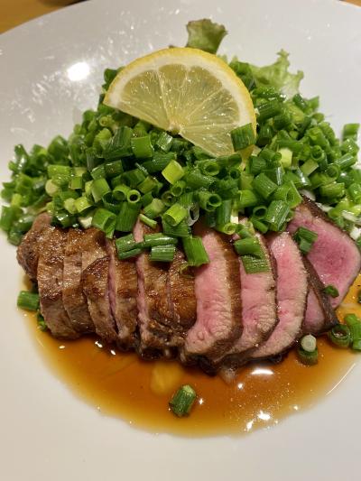トマトスライスを食べ終わる頃、牛タンたたきがやってきました。外はカリッと中は非常に柔らかくて牛タンのイメージが変わりました。ボリュームもあるので2~3人でもいいかも。