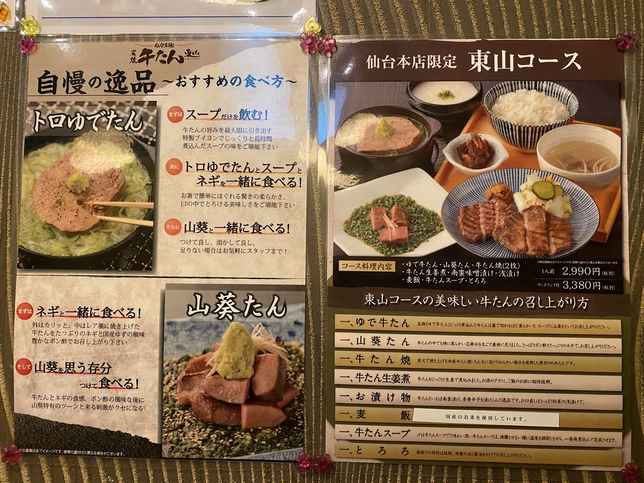 今回は、いろいろな牛タン料理を食べられる『炭火牛たん東山 仙台本店』にしました。