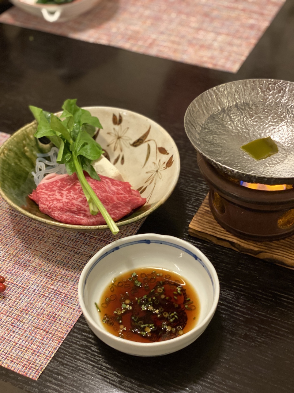 料理はコース仕立てで1時間30分くらい時間をかけていただきます。料理は見た目も綺麗に可愛く盛り付けてあって大満足。庄内浜の新鮮なお魚や雪降り和牛の尾花沢のしゃぶしゃぶがいただけます。特にしゃぶしゃぶのお肉はすき焼きのように厚くて食べ応えがありました。また、〆の冷たい鶏ラーメンくるのが面白いですね。