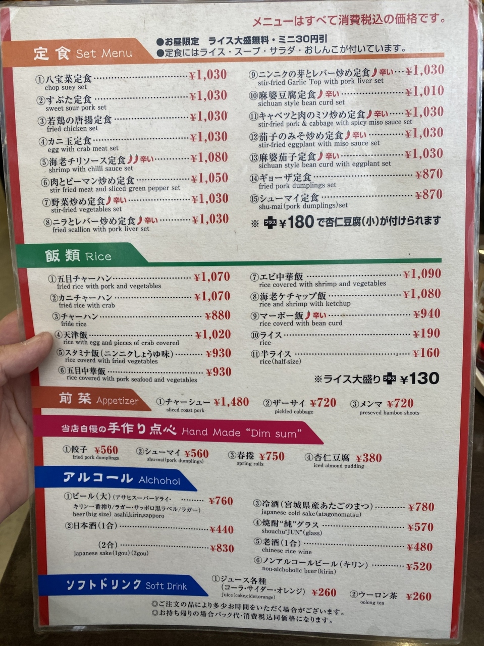 餃子が無いのと遅い時間だったからかご飯も売り切れで無いのが残念。