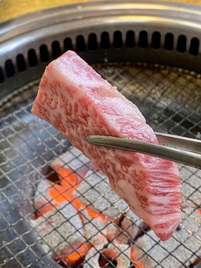 まずは牛タンから、柔らかくサクッとして美味しい。カルビは普通のカルビとは思えないほどサシの感じがいいですね。両方ともお肉が厚くて食べ応えがあります。そんな中、特選カルビ1,600円を追加オーダー、サシも良くお肉は箸でお肉を押すとふわやわで柔らか♪( ´θ`)ノ