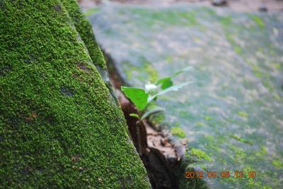 曇り時々雨ですが、遺跡の壁のカジュマルと苔を撮ります